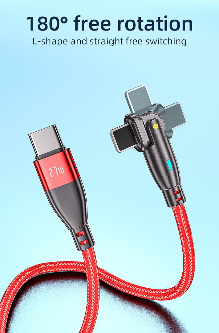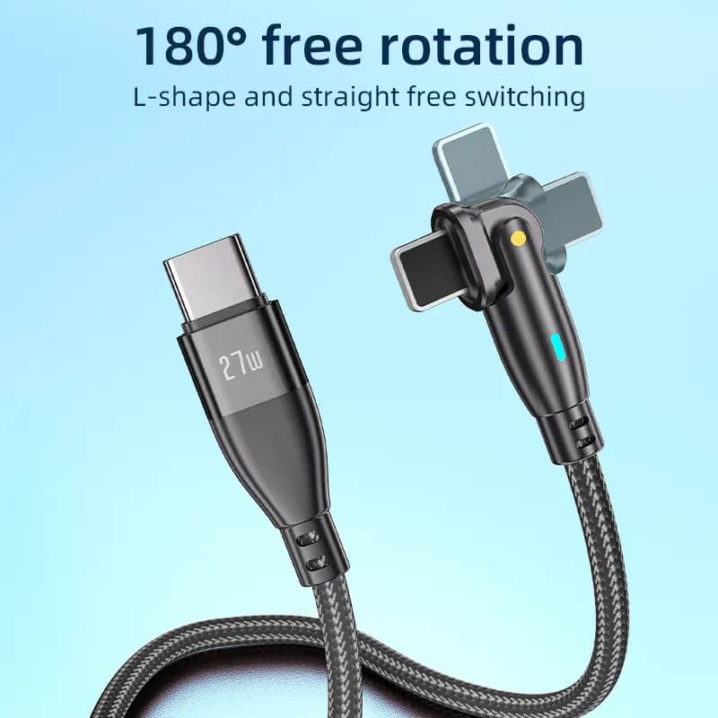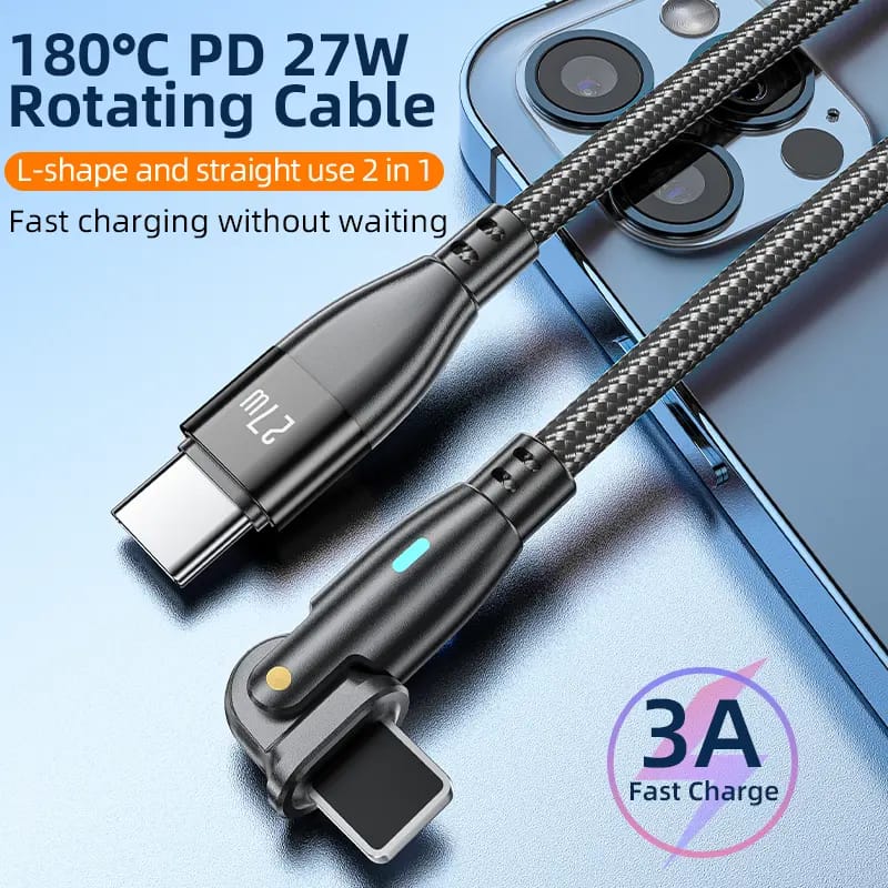 USB C to 8P Fast Charging Cable PD 27W 180 Degree Rotation Data Transmission Cable for Laptop & Phones