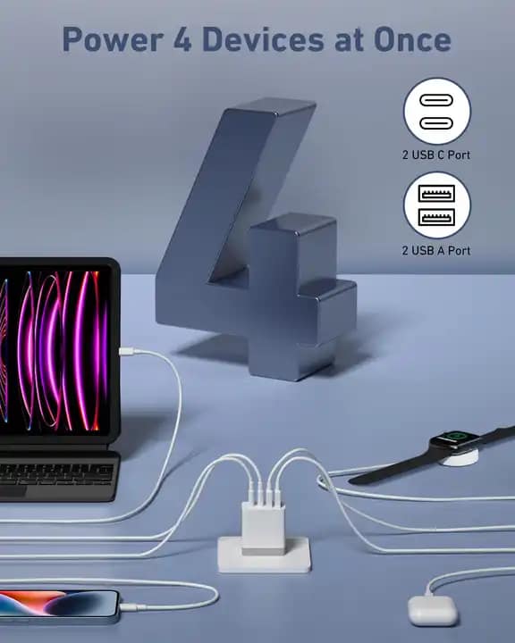 - 【High-Speed Charging】:Upgraded USB C Charger Block charge iPhone series models up to 3X faster than original 5W Charger.And when you connect 4 devices,power will be distributed efficiently between ports to ensure you get the best charge to minimize waiting time.The best replacement for your original usb charger.
